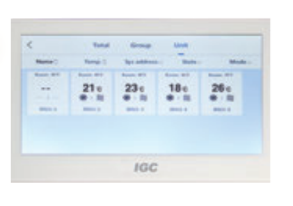 Центральный пульт управления IGC (АйДжиСи) WR-DM01A с сенсорным экраном – это мультифункциональный прибор, который может управлять 32 системами с 256 внутренними блоками в пределах максимальной длины соединения равной 1200 метров. Удобные и гибкие настройки, как при контроле нескольких блоков в группе, так и при управлении каждым блоком в отдельности. Имеет функцию блокировки не только собственной клавиатуры, но также позволяет пользователям блокировать установленный режим каждого блока или блокировать ПДУ.